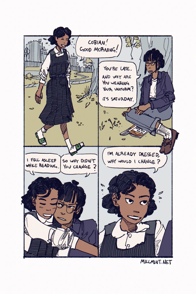 Cobian lo Ro de Viviya de Quesminek is [[Tzipora]]’s longtime friend and occasional girlfriend. Stern in manner and appearance, Cobian is easily remembered by her circular spectacles and stern fringe, styles maintained since childhood.