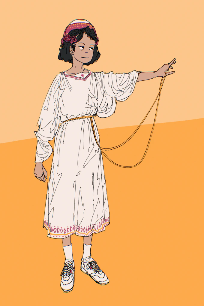 Tzipora is blue-eyed and black-haired of mixed Gitana (Spanish Roma) and Ashkenazic heritage. She has a round head and a big smile, and is naturally athletic. She has dry, wiry hair that she parts in the middle. She speaks Oslolan serviceably, but prefers to communicate in English and has a Latin American accent.