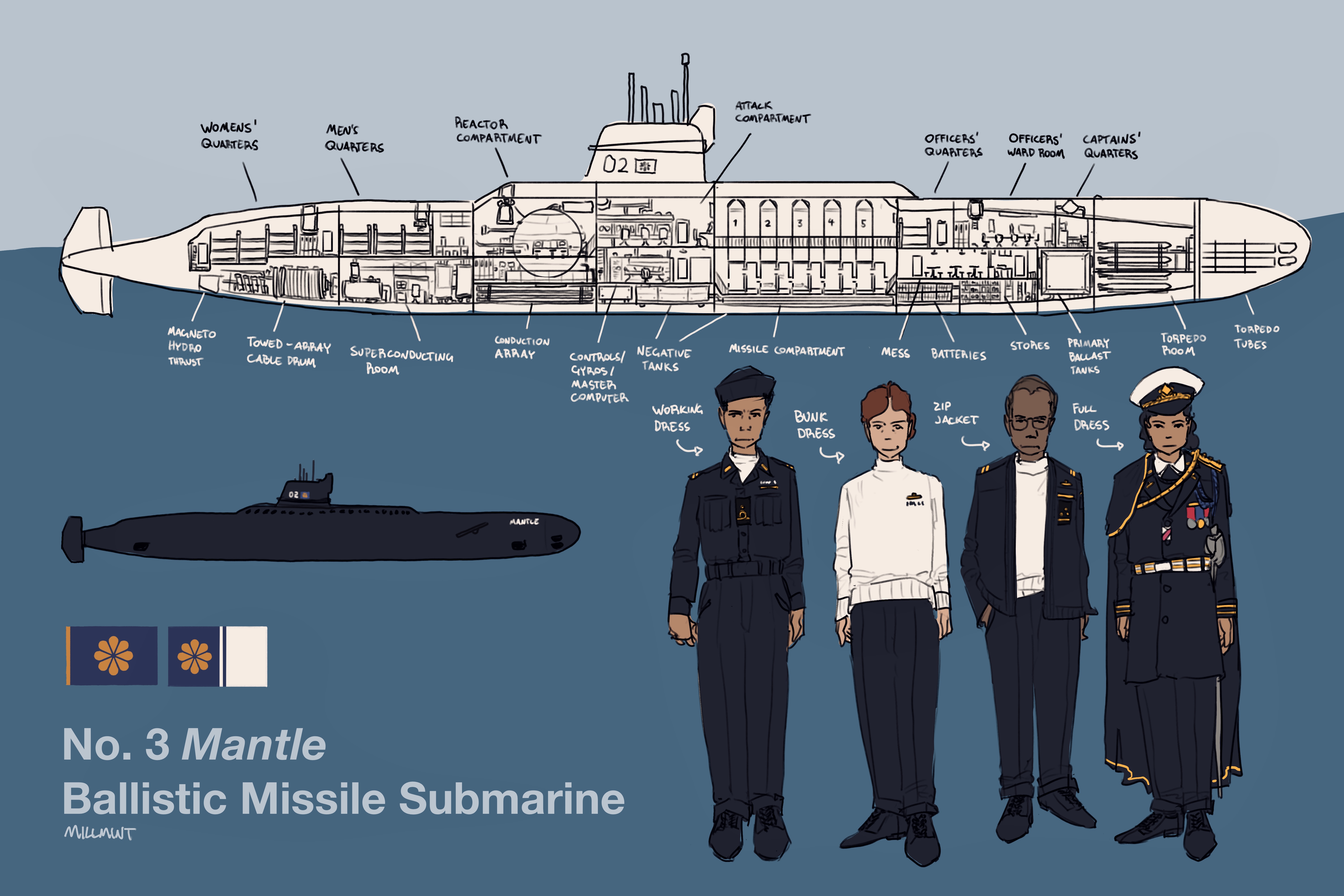 The Mantle-class SSBN is designed for long-duration patrols, operating undetected in the Atlantic (and elsewhere) while remaining a potent nuclear deterrent. Its role is primarily strategic, ensuring that retaliatory nuclear strikes remain possible in the event of an initial attack.