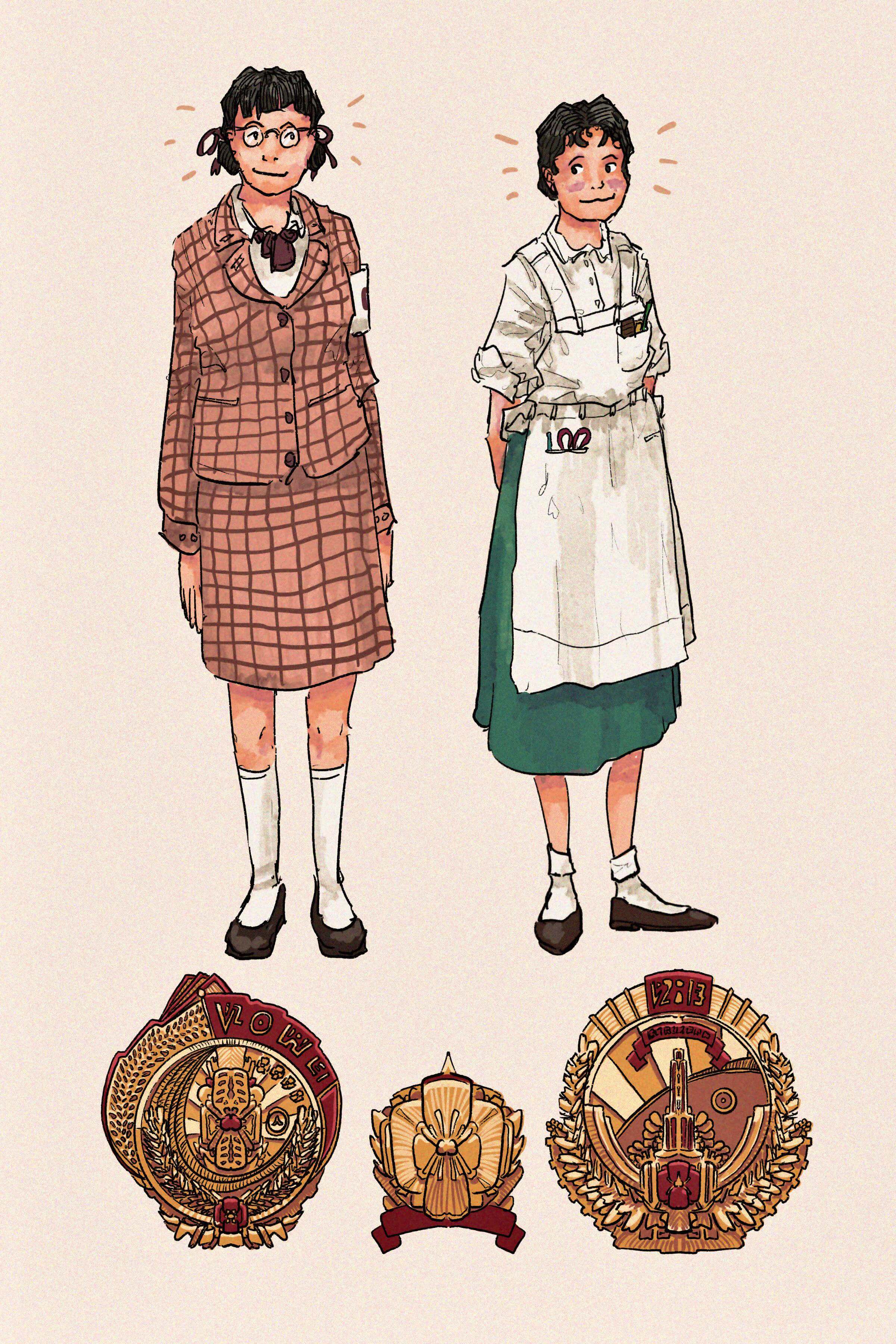 This is contrast to the cosmopor, a more conventional police outfit. A cosmopor officer stands on the right, in standard summer uniform. He carries a radio, revolver and rubber baton for the worst of his duties, and is embedded deep into his local community. Cosmopor officers traditionally visit and introduce themselves to each house in their beat, and spend far more of their time mediating, counselling and organising than they do making arrests. The autonomy of most Vekllei communities largely spurns petty legal proceedings, and so the cosmopor are a critical aspect of sundress municipalism, resolving disputes personally and taking custody of a person only when it’s needed. Most crime in Vekllei tends to be emotionally motivated — so it is in this domain that cosmopor navigate.