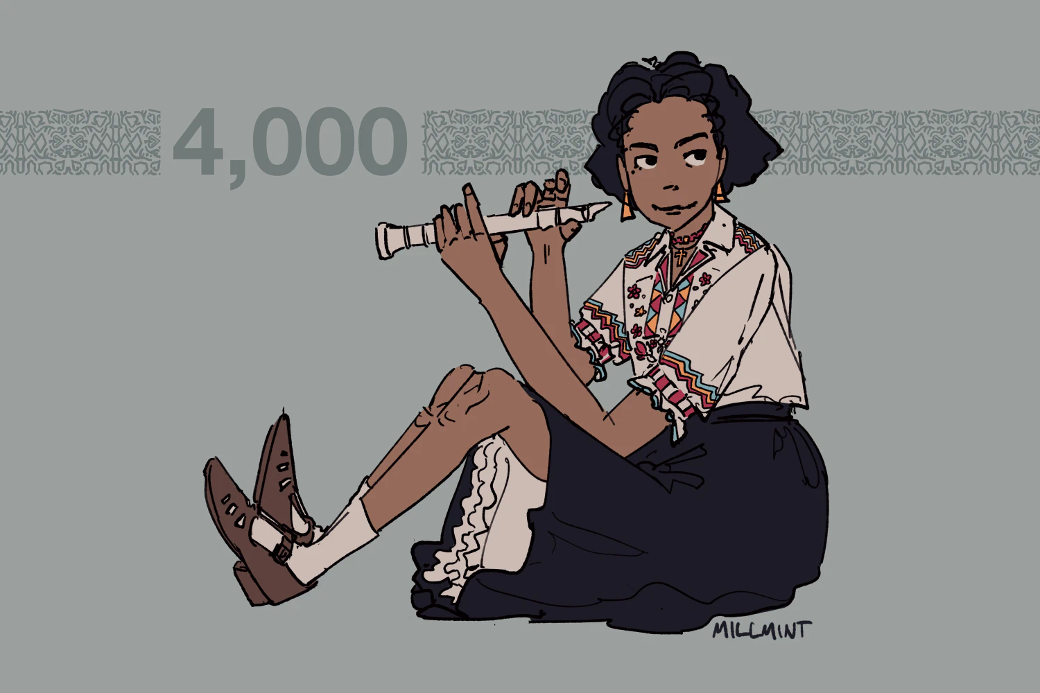 Drawn to celebrate 4,000 followers on x.com. I did one for 3,000 too feat. Tzipora falling into a pond, but I hated it so much I never posted it.