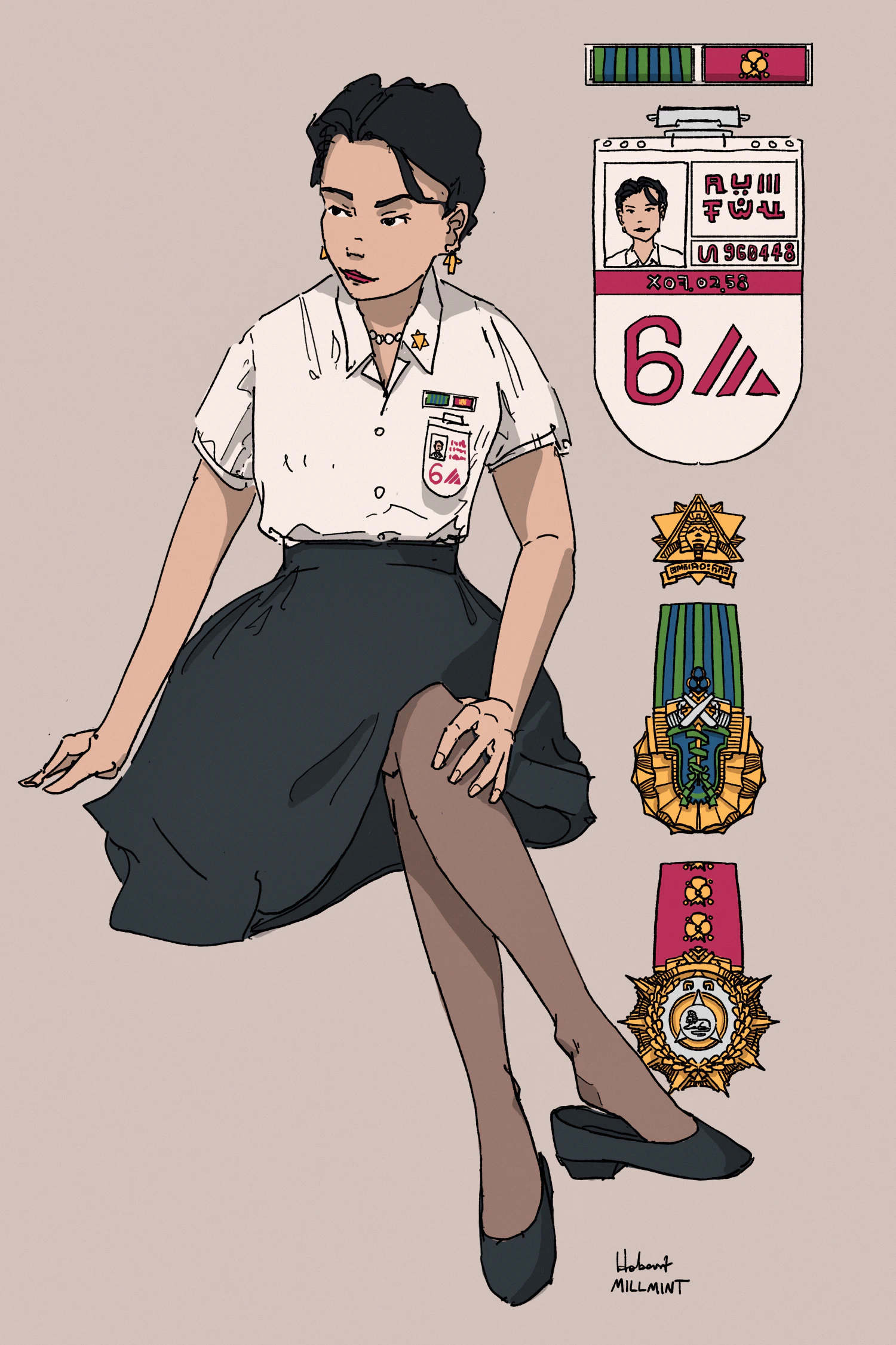Ayn is an Intelligence Analyst at HO/NI’s Section 3. Intelligence officers in the Commonwealth have ranks, called Grades, and receive awards that can be displayed above their ID tag in formal settings. In civilian clothes, two awards (usually the highest but at the discretion of the officer) are worn in a ribbon bar. In full dress the medals are worn.