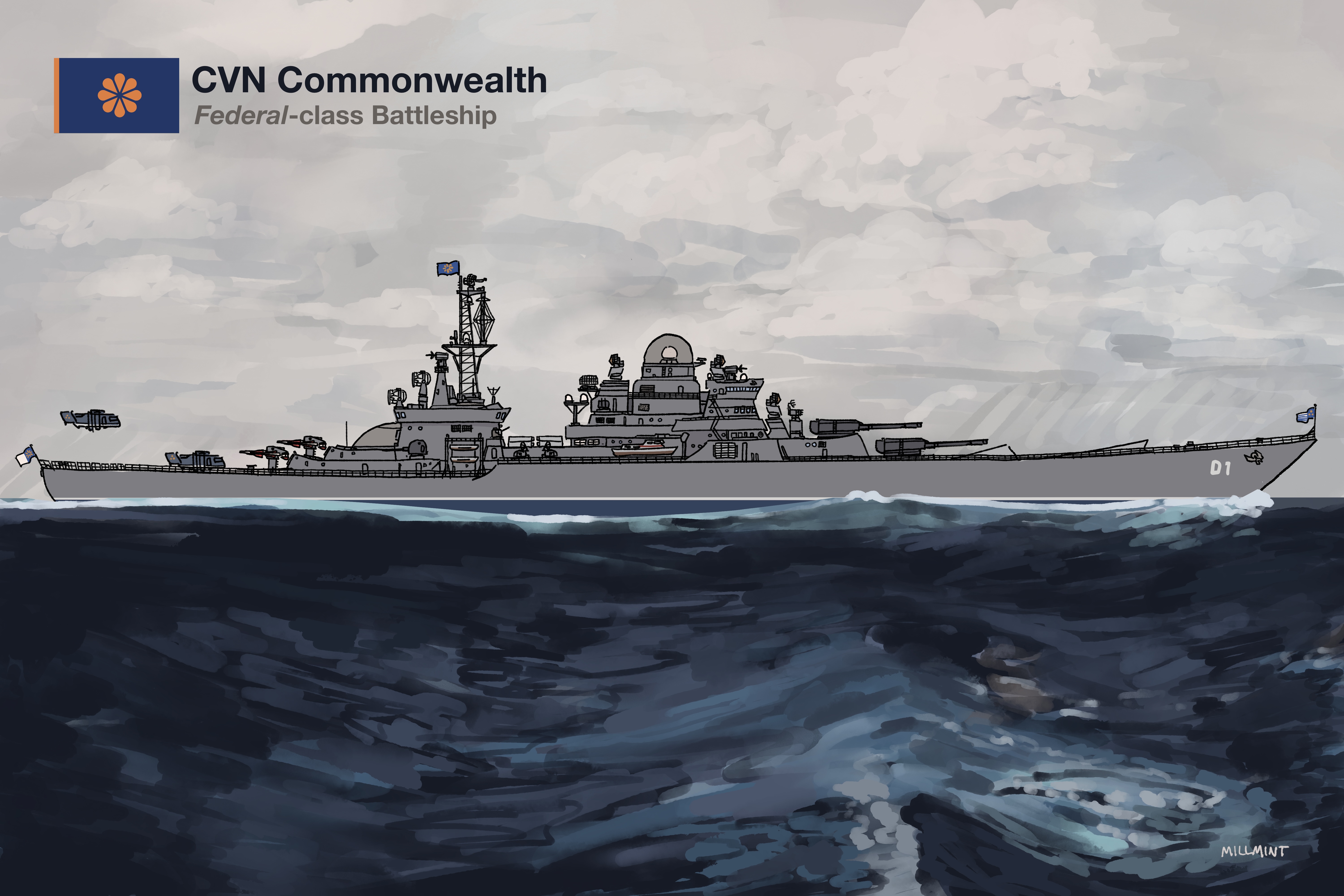The Federal-class battleship is the only such example in the Marine Services and is the flagship of its fleet. It provides naval guns where they’re needed, commissioned to assist in amphibious landings and shore operations.