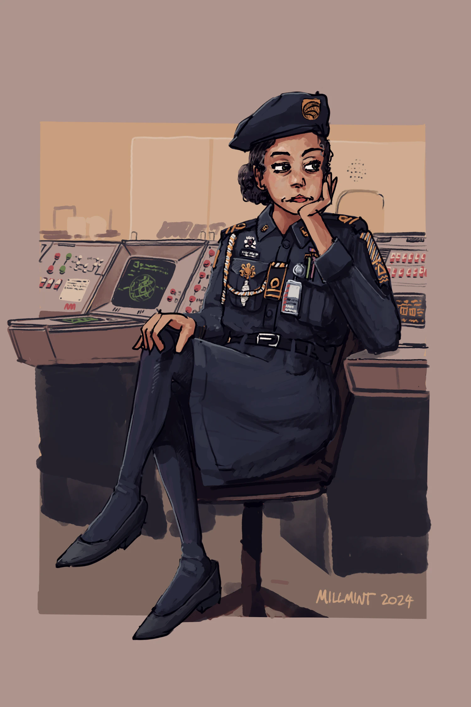 MillMint -millmint 📔 Intro 📓 Factbook 📕 MillMint 📗 Stories NEW 📗Story: Trash Scout ❌ Bored-er Guard Friday, May 10, 2024 Home Stories MillMint Vekllei people only work half-days and still sometimes there’s not enough to do. The border guards love to chat as they flip through your papers.