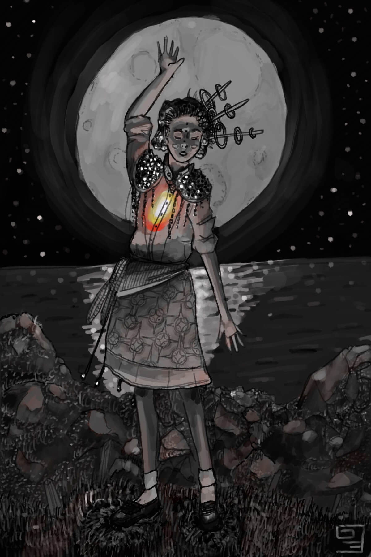 It is a great privilege to know how to contact the spirit world. Ordinary Earth people like Tzipora usually have ask for passage from the bones of angels, called Derden. But out here, with the Roala, she partakes in their way of life to cement the bond humanity has across systems.