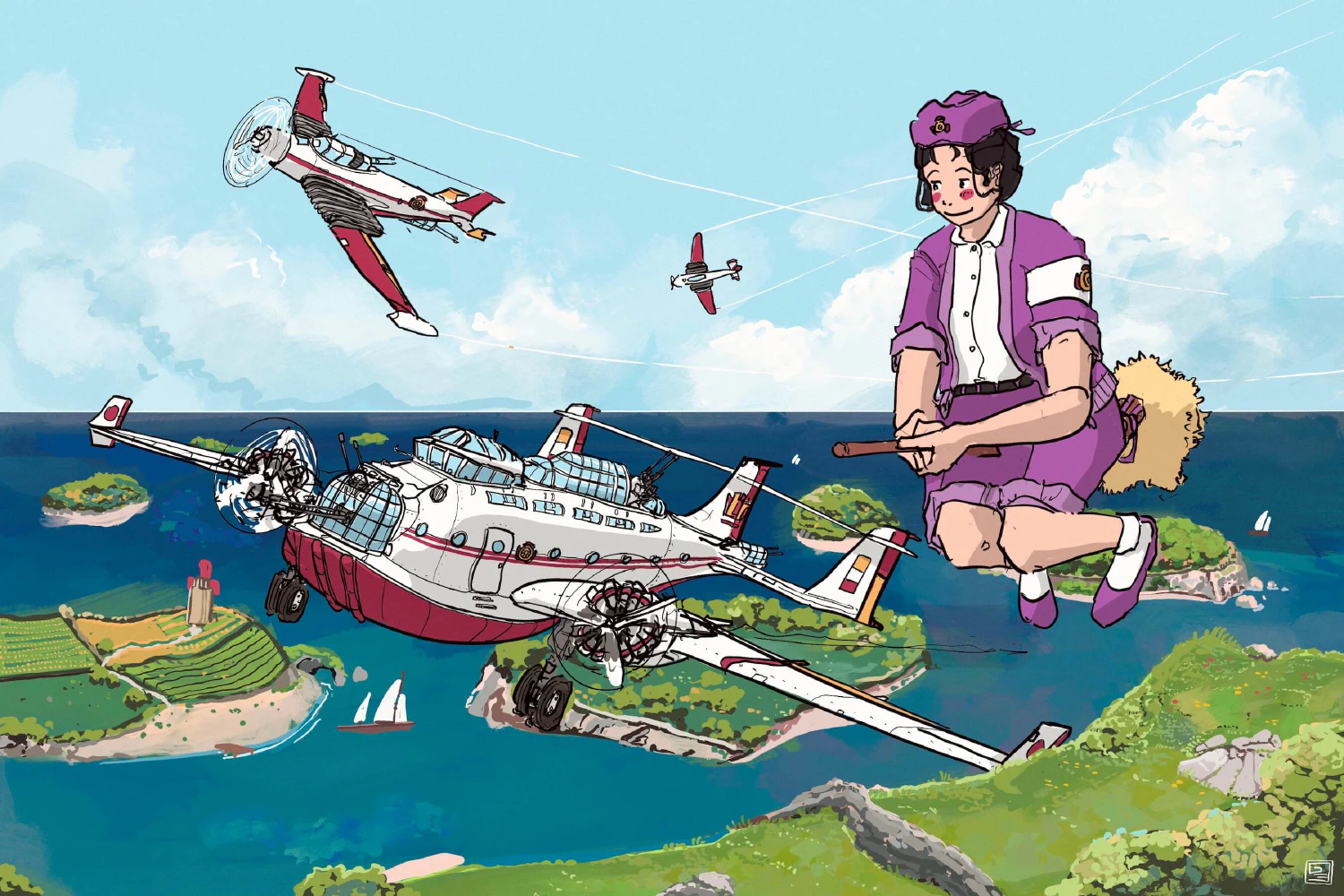 Once, she was told to meet a special transport delegation out at sea. They didnât explain anything more. She flew out to the coast on her broom and the glint of a wingtip caught her eye. As it approached, her instinct flared with alarm. These were not dead planes â the crew in them were very much alive. She flew out and approached the largest aircraft in the formation, a transport bomber of a type sheâd seen several times before. She landed atop the aircraft and made her way inside via a turret.