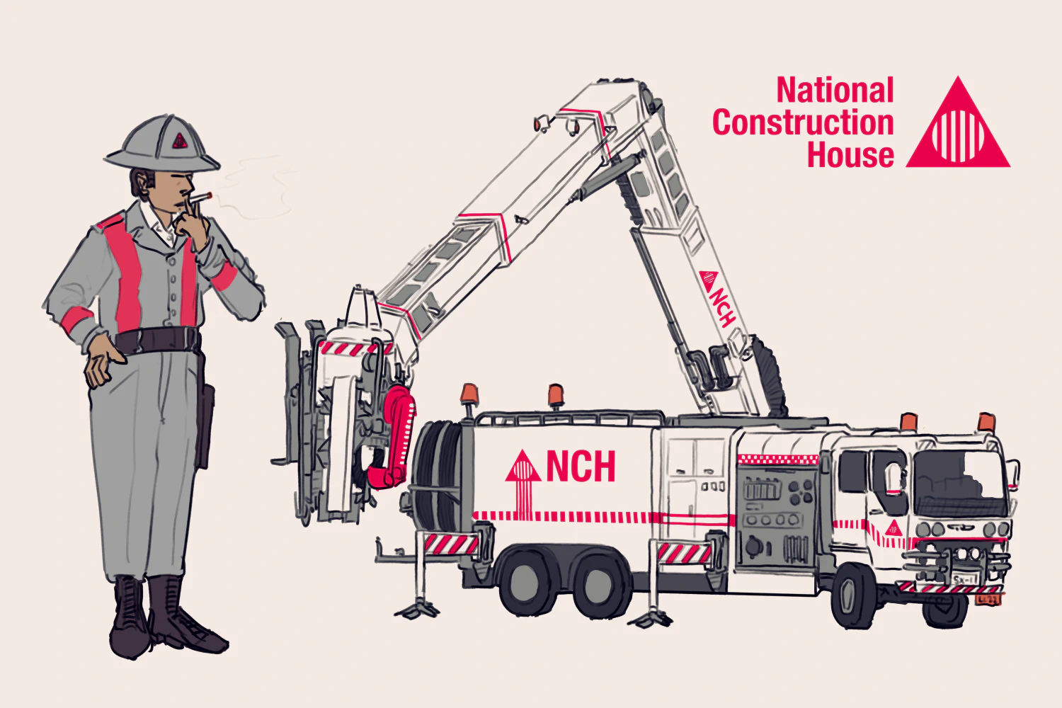 The NCH Auto Truck generally accompanies materials trucks and an Automan Command Truck – a robot hauler that carries independent tracked or walking robots that finish the interior and run electrics. In certain projects, trains may be used instead with a special rail siding constructed. In this context, construction labourers spend more time setting up and aiding robots than they do laying brick or digging foundations.
