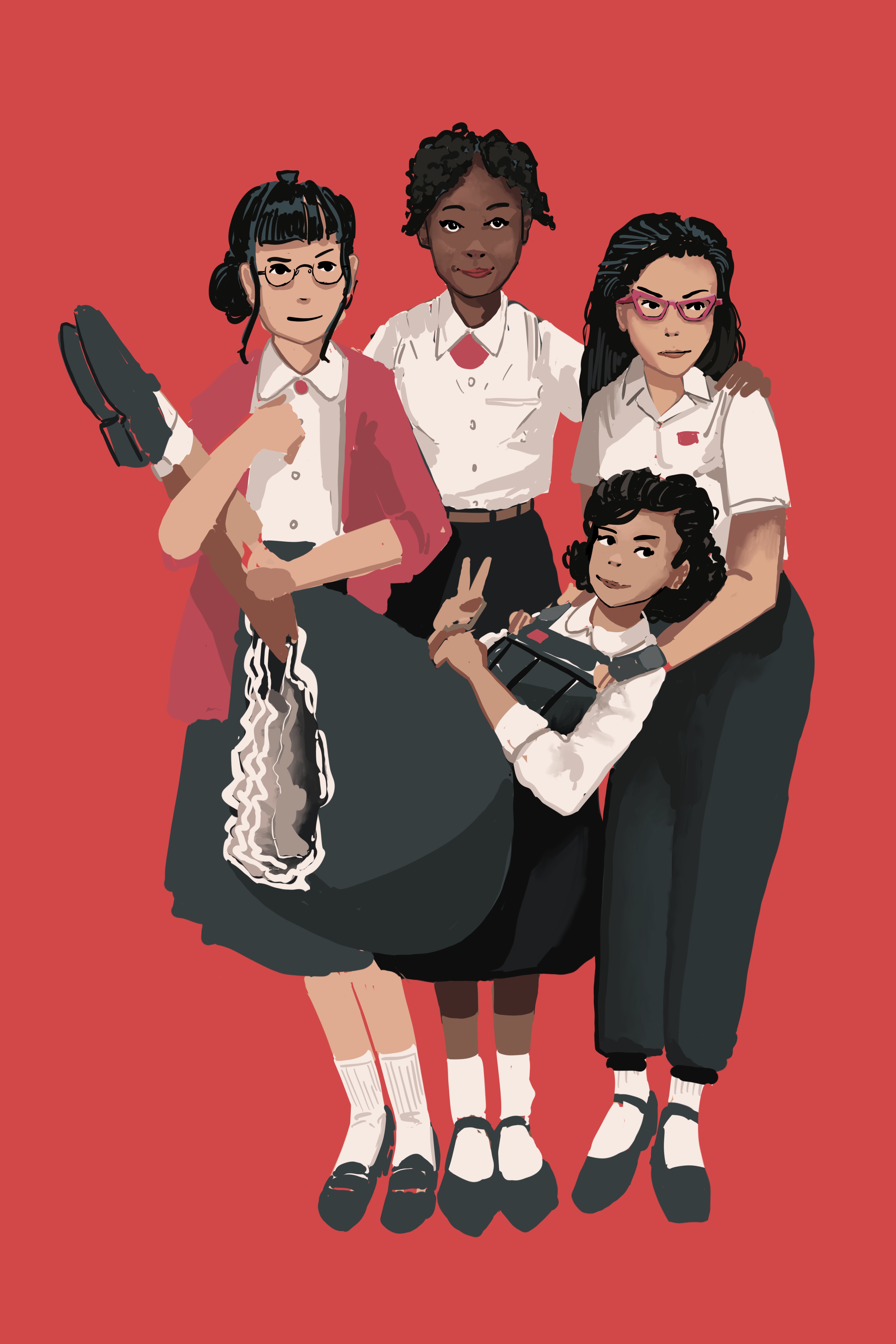 Finally, Tzipora (being held) is the main character of the story. Her mother was Spanish Roma and her father was Yiddish. She’s very friendly but intense and she’s sort of the focus point which the friendship group is centred around. She’s got more going on with her (she doesn’t live with her parents and how she came to Vekllei is ambiguous) but she’s just trying her best.