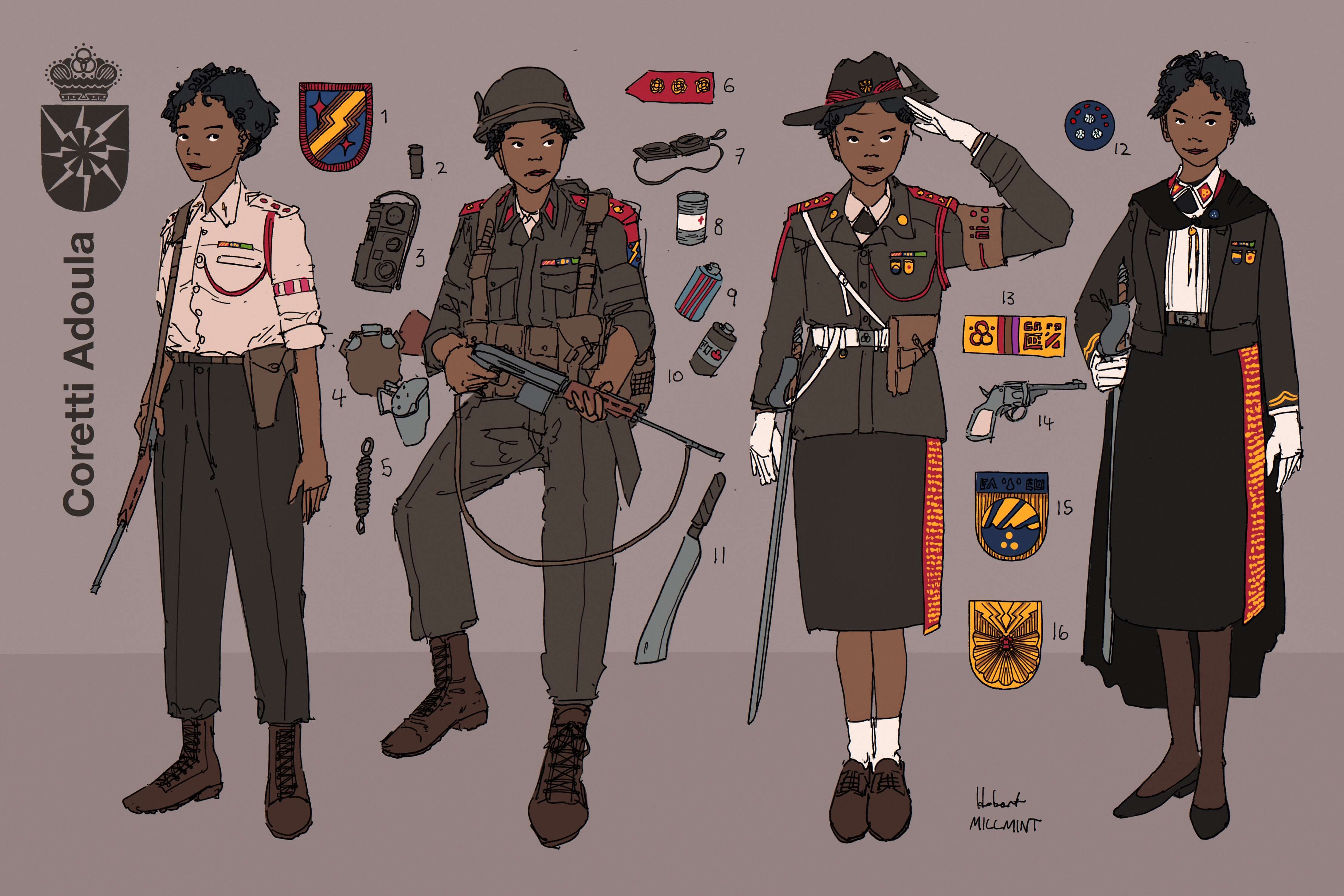 - Battle dress sees a field jacket worn over or replacing the day fatigues shirt, which can be tucked or left out. The equipment of a soldier varies from mission to mission, but No. 3 harnesses and No. 6 packs are most common. Coretti here is carrying a No. 16 small battle rifle, called a “midge.”