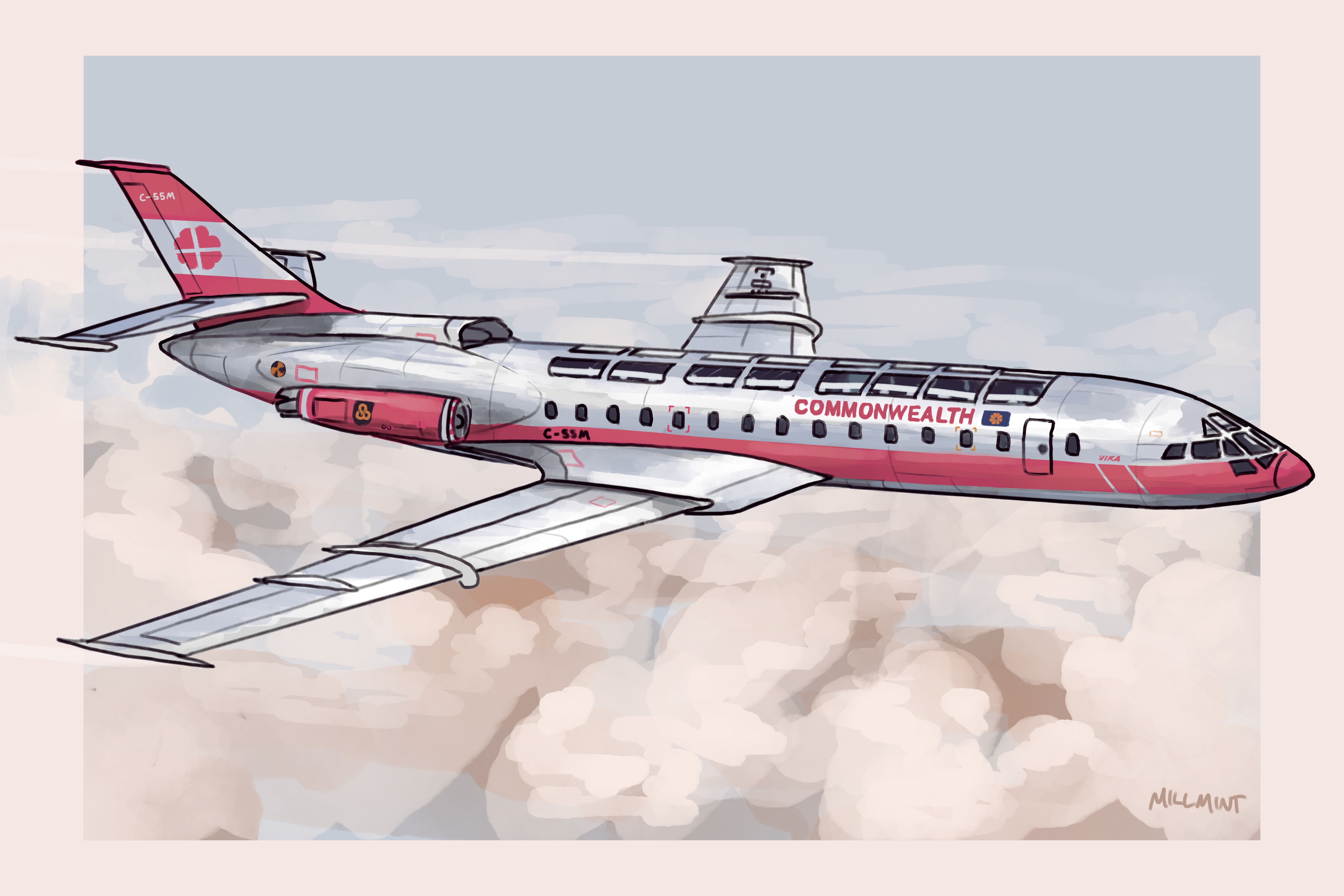 These Avia Sunjets are manufactured by Government Aircraft Factories for Commonwealth Airways. They’re perfect for island-hopping routes throughout the Vekllei Caribbean, because their swing-wing design allows them to land on shorter island runways.