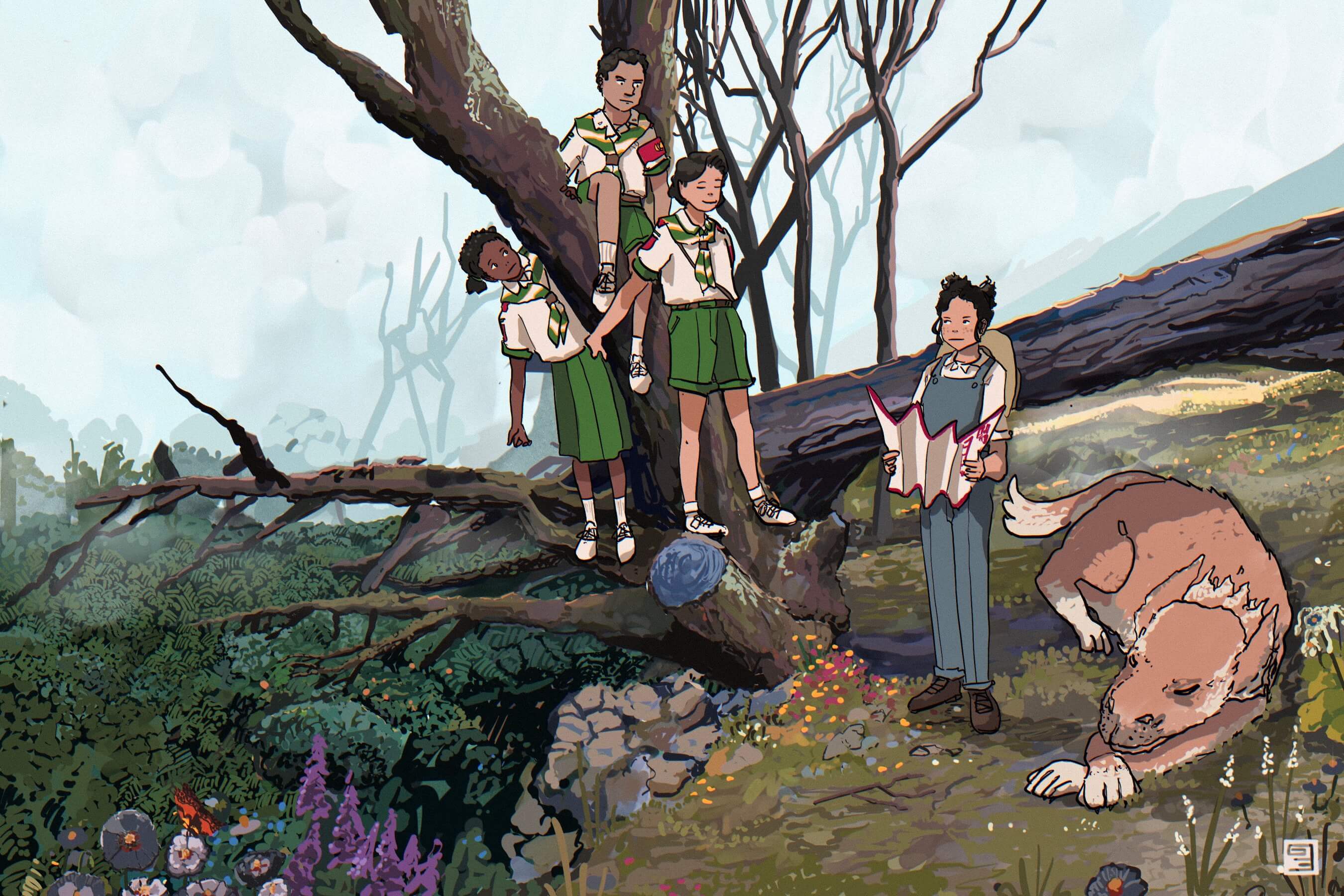 I like the attention to detail on Tzipora and the golden wattle on the right. Vekllei has wattle as canon – it doesn’t make much sense, but who cares? It’s too lovely to exclude from utopia. Bez also shared a preliminary sketch with me, seen below.