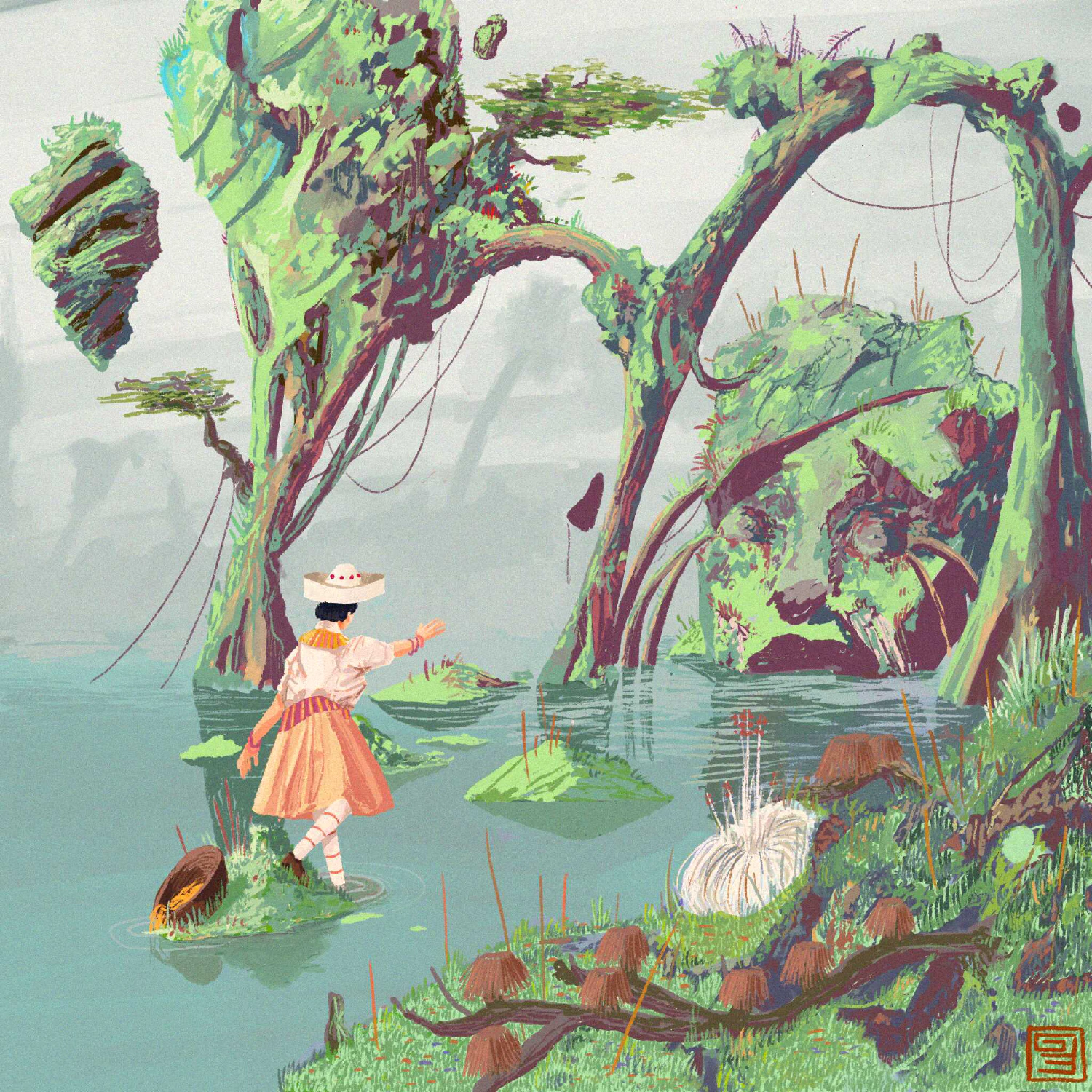 The Pachinki pangea is home to six subcontinents of old magic, mostly inherited from the Palace Gods, who are worshipped by urban centres to this day. The Lem subcontinent is sparsely populated, as the minerals of its many swamps are rife with disease (an illness contracted here, of which there are many, are called plaguentart in Lem or honeydeath in the Zen tongue).