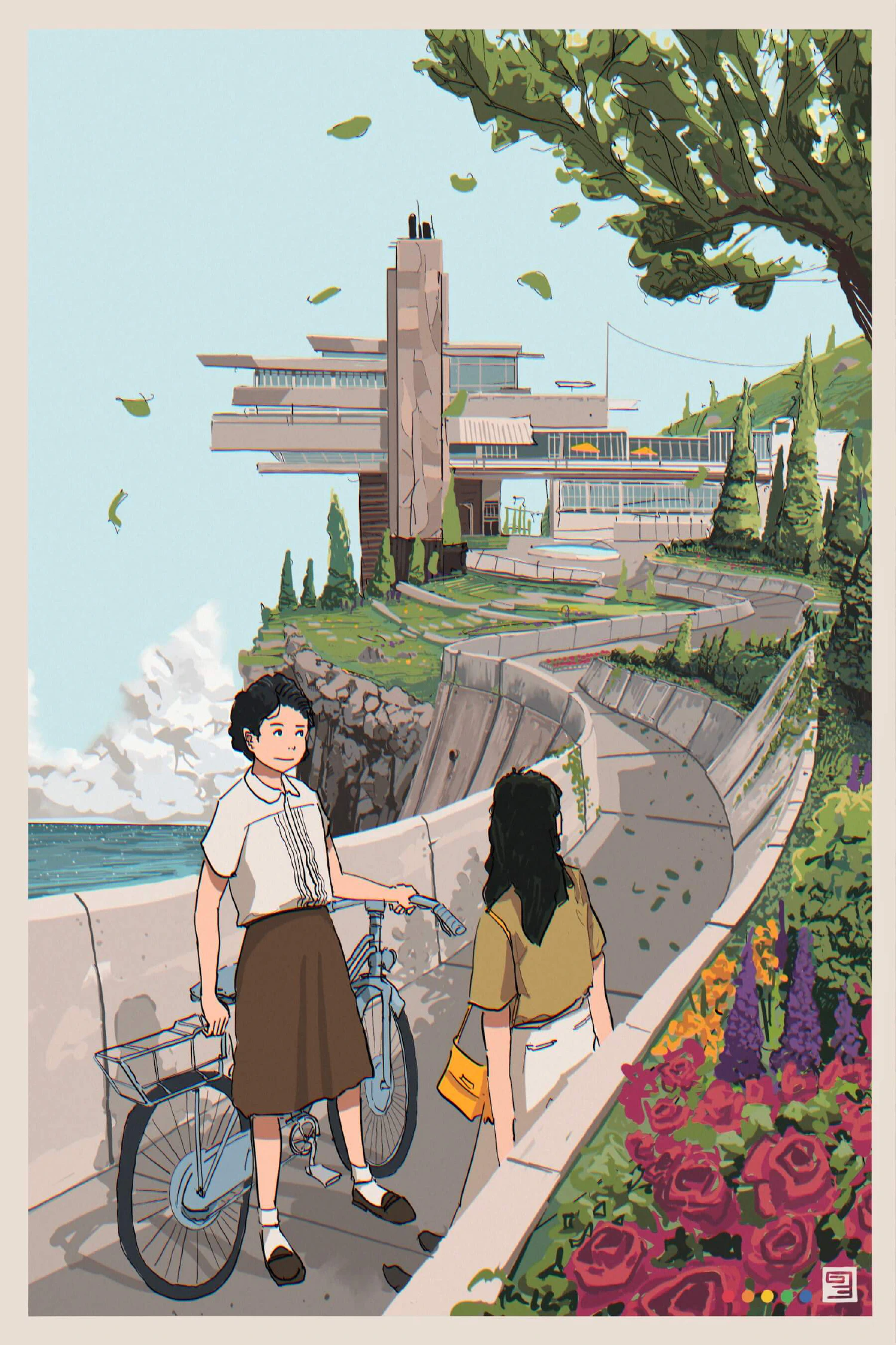 Pictured: Tzipora and Cobian cycle around the cliffs in the borough of Totoyan, on Vekllei’s East Coast. Up ahead lies the Ocean Atlantique Restaurant and Public Gardens, run by the Totoyan Municipality.
