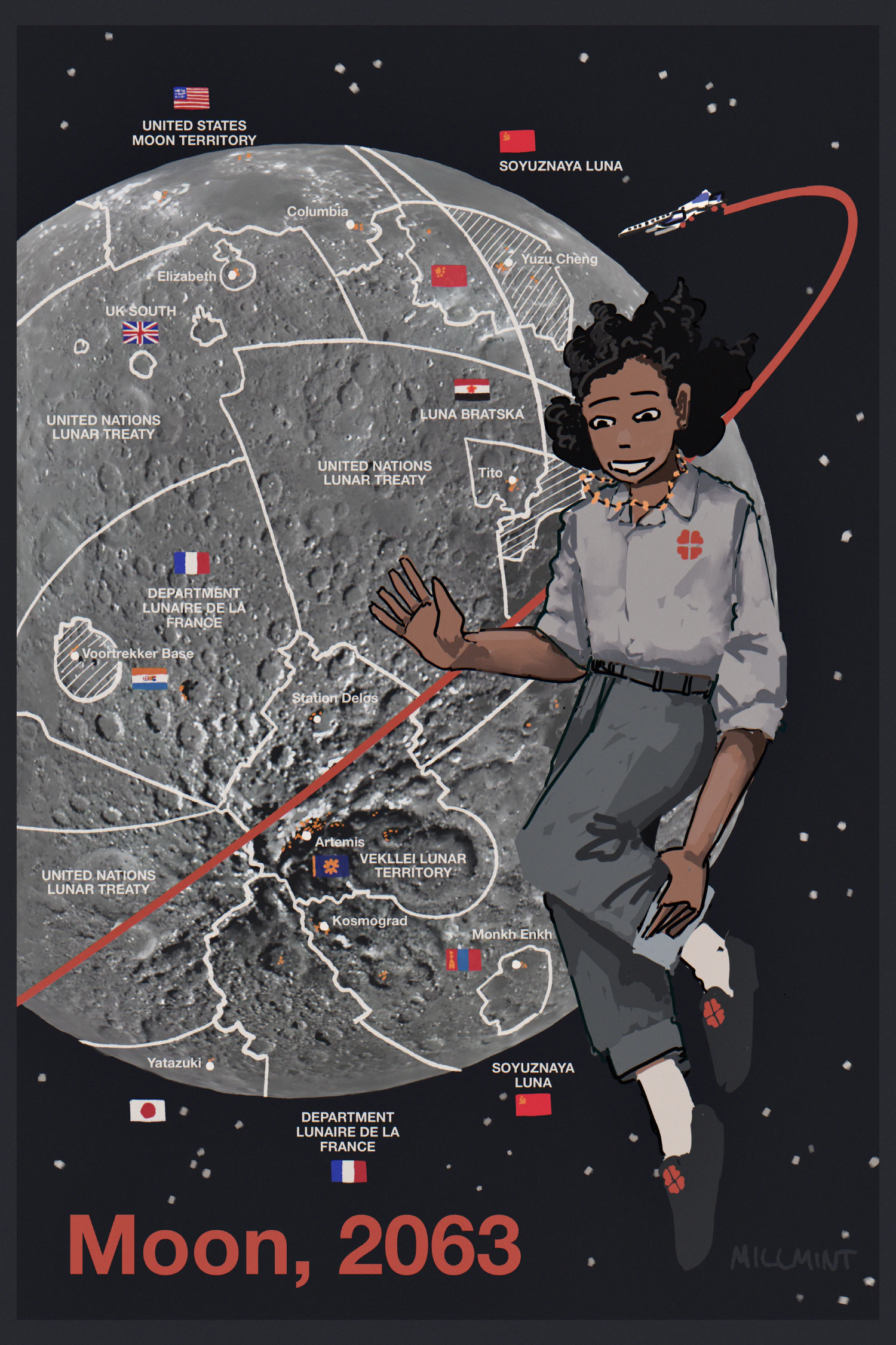 MillMint -millmint 📔 Intro 📓 Factbook 📕 MillMint 📗 Stories NEW 📗Story: Trash Scout ❌ Moon, 2063 Thursday, Feb 20, 2025 Home Stories MillMint The claims of the moon in 2063. This shows only the southern pole, which is more recently settled and substantially more chaotic.