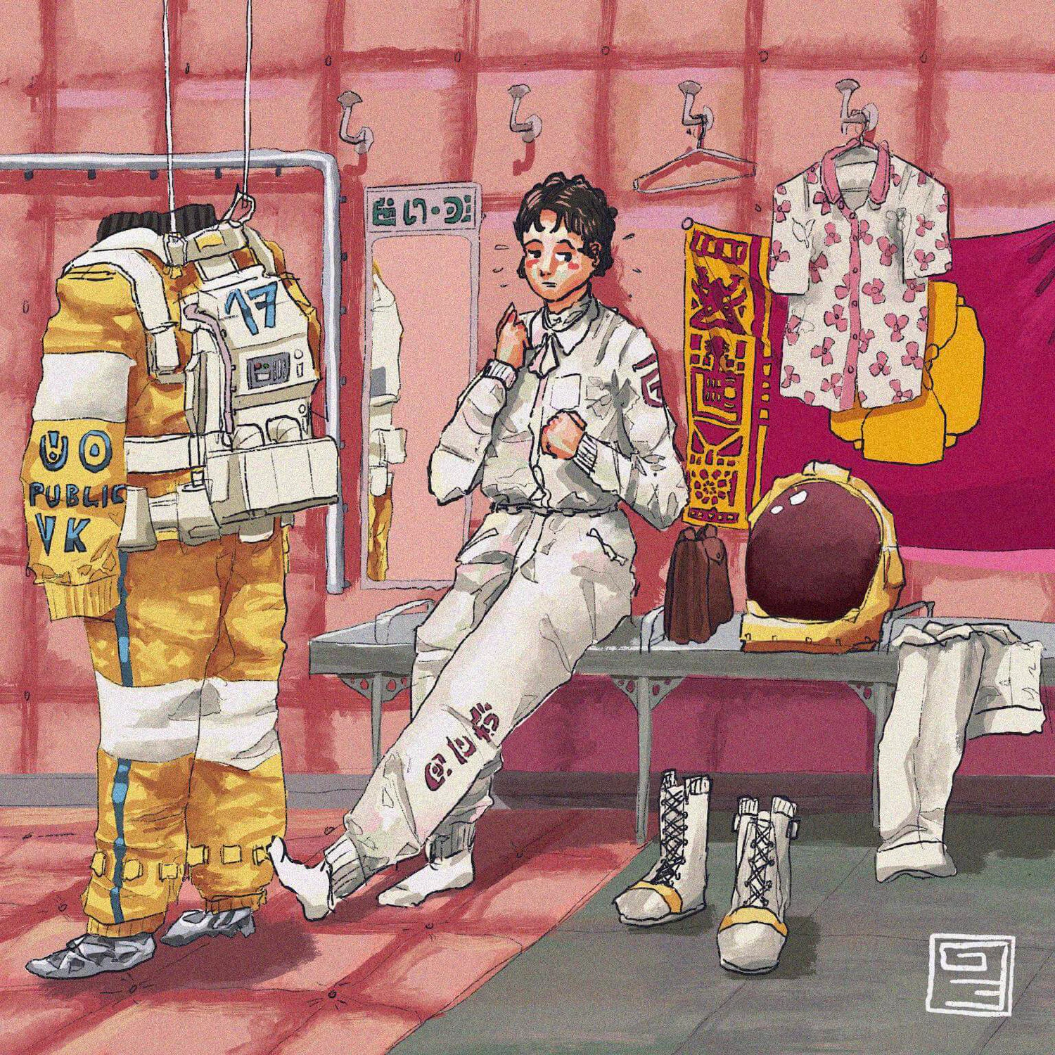 A heavy atmospheric suit was suspended by its lifelines to the roof. It was bulky and had strange shiny booties at the feet. Nearby were moon boots, which would be sealed along with the rest of the suit in a vacuum cocoon before test depressurisation in the airlock. The International Standard flag was hung on the wall, probably to impress foreign tourists. There were a handful of foreign tourists visiting, usually relatives of Vekllei citizens. Occasionally you saw obviously wealthy foreigners who’d payed their own way. They were easy to spot, for their gold rings and nice clothes looked absurd and tacky in the face of the glory of Vekllei infrastructure.