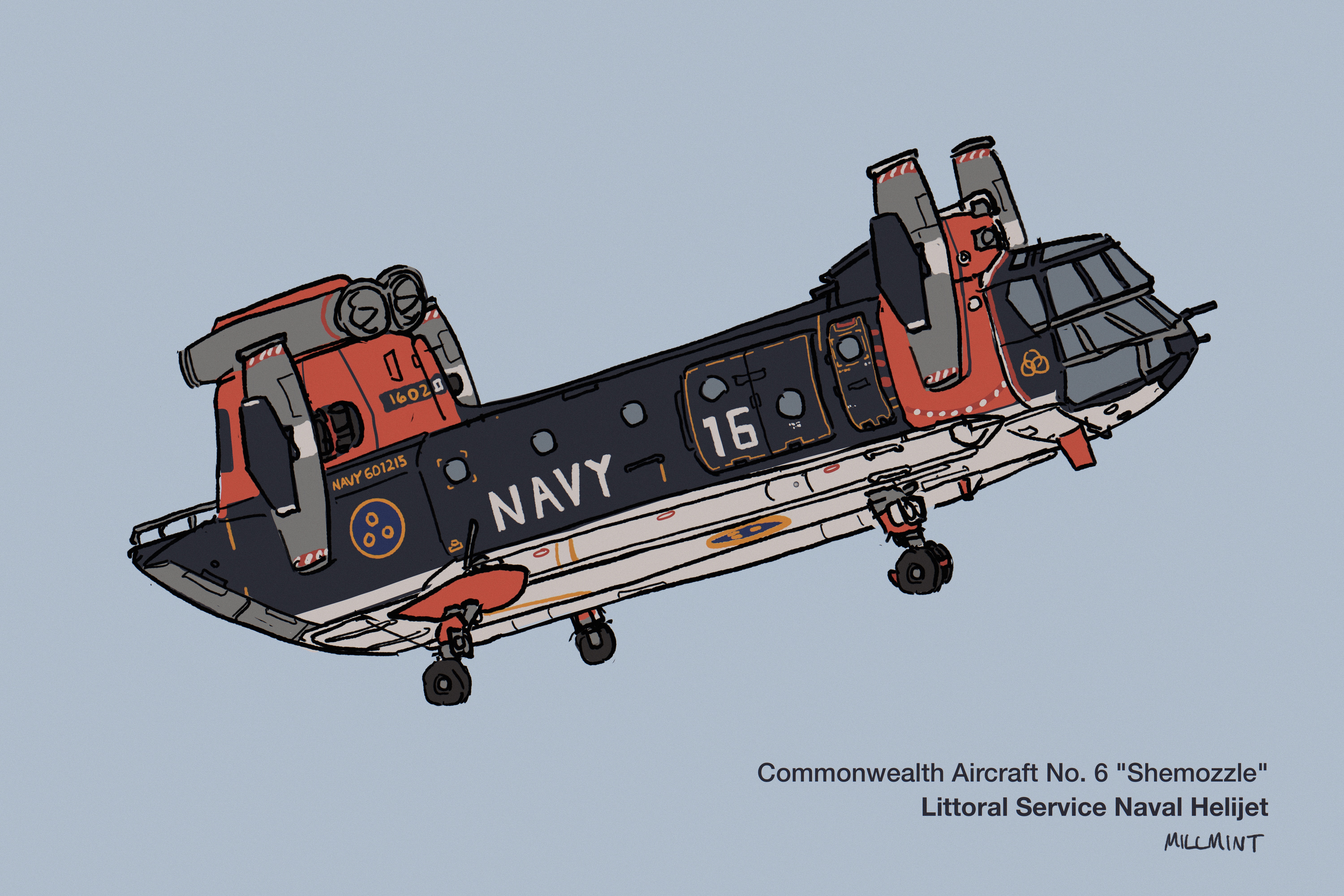 MillMint -millmint 📔 Intro 📓 Factbook 📕 MillMint 📗 Stories NEW 📗Story: Trash Scout ❌ Naval Helijet Sunday, Nov 24, 2024 Home Stories MillMint Naval helijet. Much faster and louder than a helicopter.