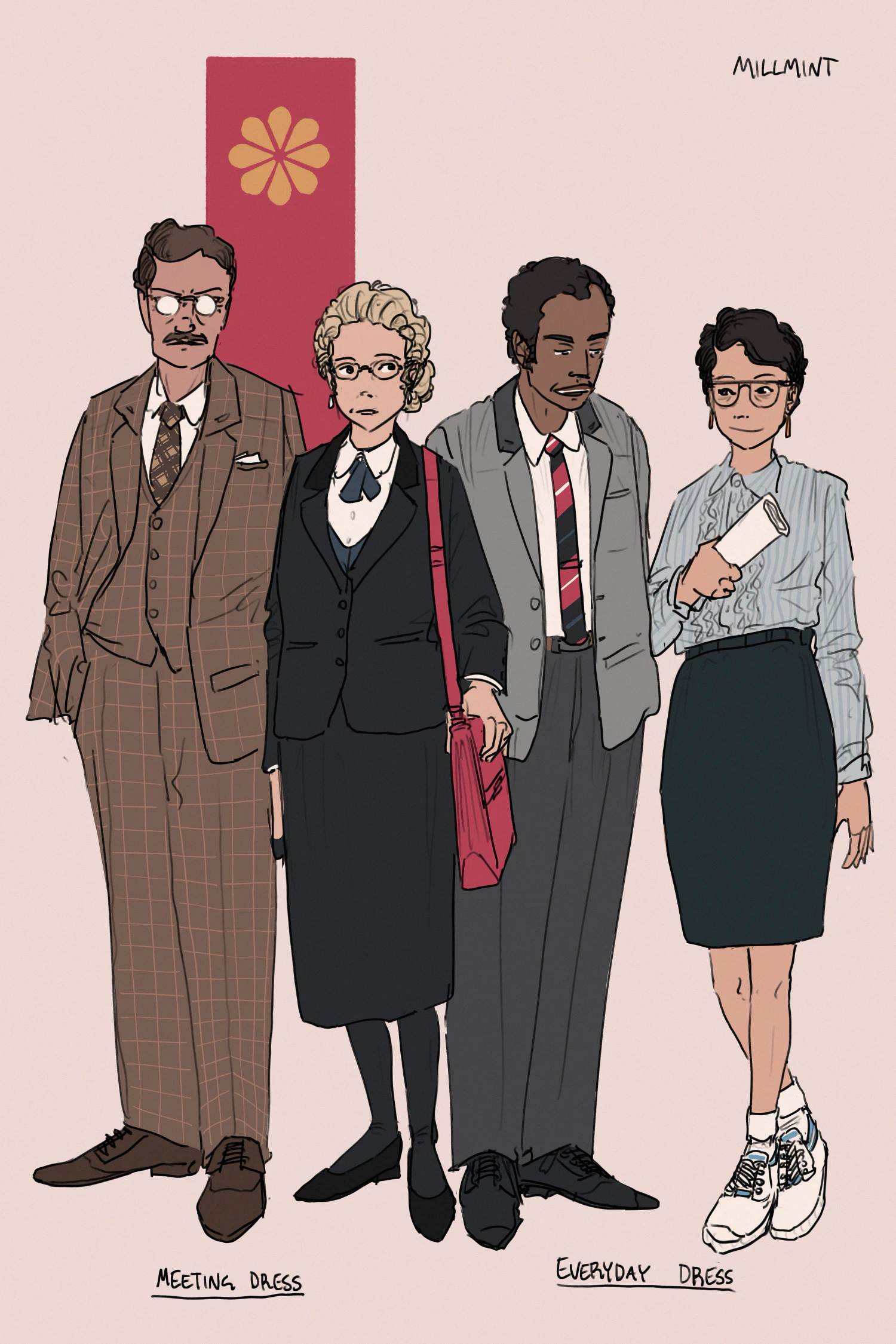 For women, things are bit more unusual. Since the “Dunlop Revolution” (named for the sneaker company popular in postwar Vekllei), it is acceptable in some businesses for female clerks to wear clean tennis shoes in the office as an alternative to heels or flats. Proper professional attire must be retained for meetings, however.