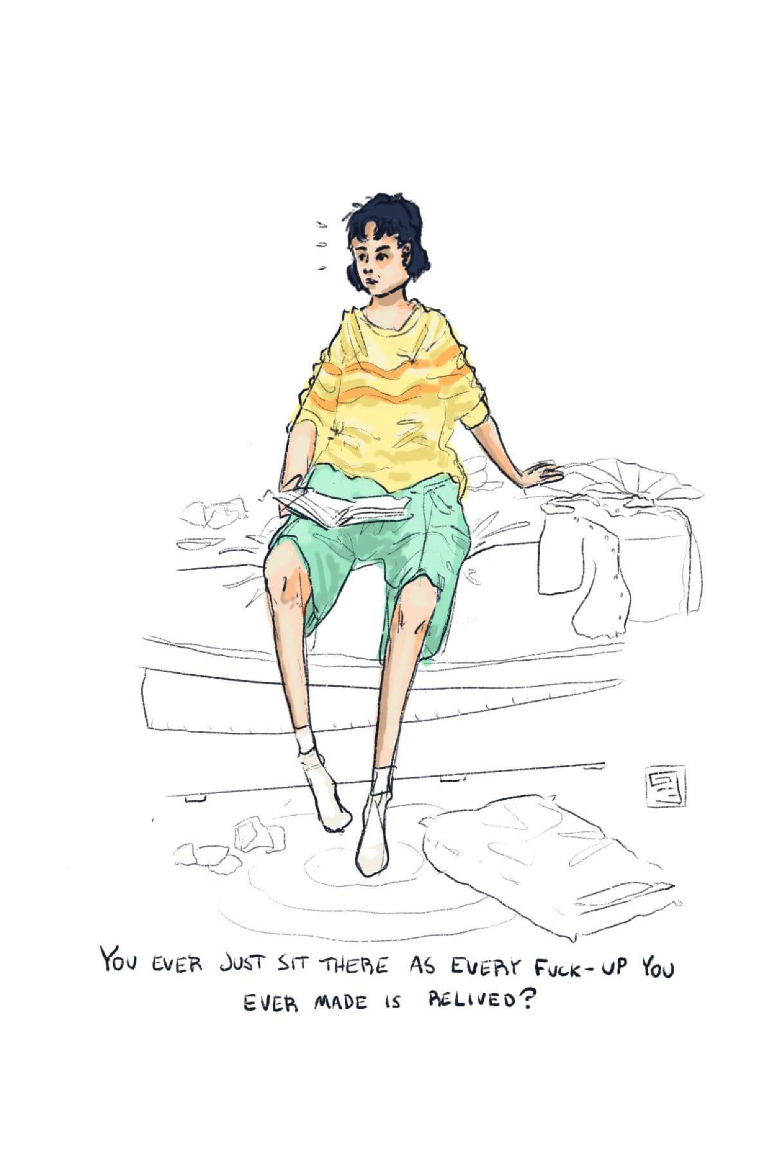 Coming up on 2am here in East Australia. Had a rough day at work. Feeling pretty isolated and my other job starts in a few hours. I donāt know if itās intrusive thoughts from OCD or just something everyone has, but four or five times a day Iāll have some sort of regret pop right into my head. I canāt seem to move on from much. Tziporaās the same. Sheās probably thinking about physical education from early that day. Sheās thinking about faking a sick note so she doesnāt have to do it anymore. She cringes and curses under her breath and then the memory passes.
