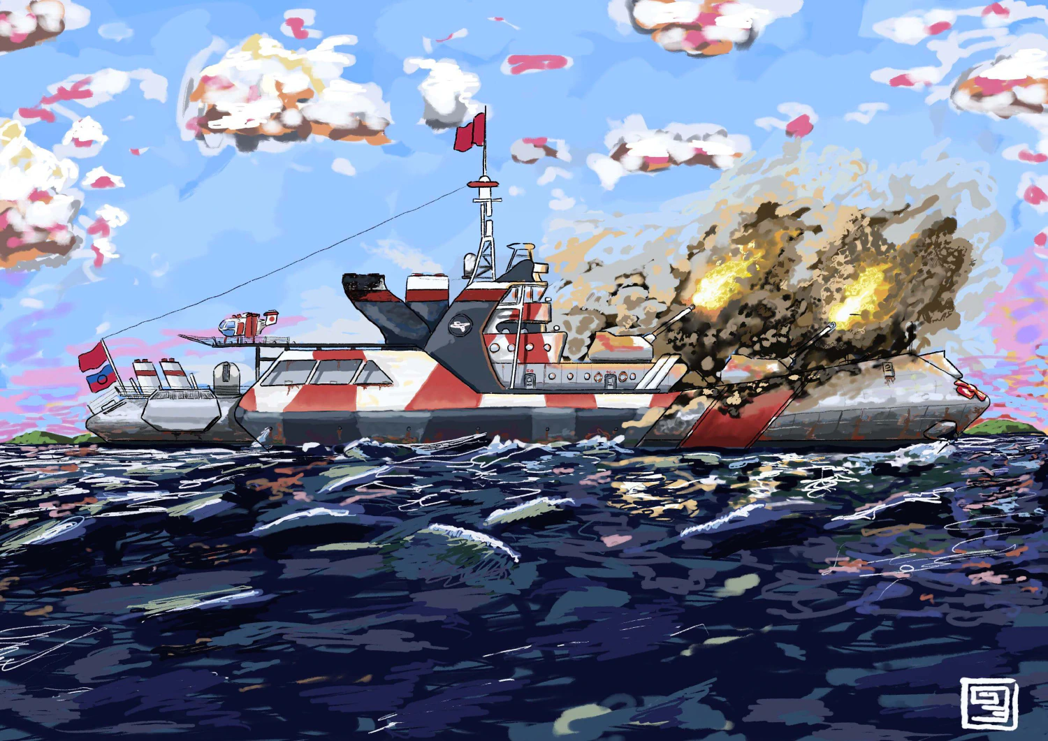 There are not many warships in the world today that are distinctive as the serpentine-funnelled, semi-tumblehome hull of the Sundress-class supercruisers. For a country that prides itself on ‘petticoat society’, it is only suitable that Vekllei continues to pioneer the ‘dazzle’ warpaint in her navy.
