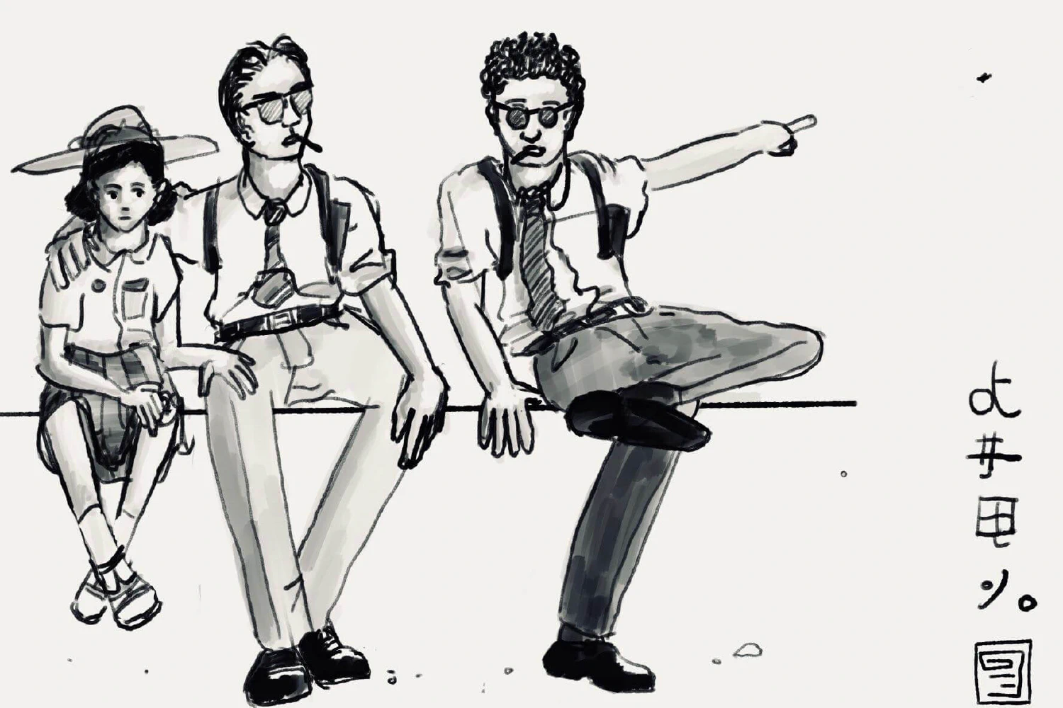 In Nevada about this time of year, the temperature stays steady at 45 degrees (~115 in yank). The asphalt sticks to shoes. On the far right is Lenny the Jew. The moniker is his own; heβs a Jew from New York who ended up working for the Vekllei Rocketry Corps, the Vekllei espionage agency responsible for operations in the southern United States. Lenny the Jew is good with women, and violence. He operates as a βliveβ agent, hunting and eliminating Chinese and American spies when necessary, bringing radicals over the border to cause trouble, and squeezing persons of interest for information. His boss is sitting next to him. Michael operates the Vekllei Rocketry Corps, but rarely participates βliveβ. His daughter, shipped over from the homeland after the death of her mother, understands the secrecy β but not the scope β of what he does. Lenny the Jew has affection for Tzipora; sheβs a strange kid that doesnβt get on well with her peers, so he brings her gifts when he calls by their house.