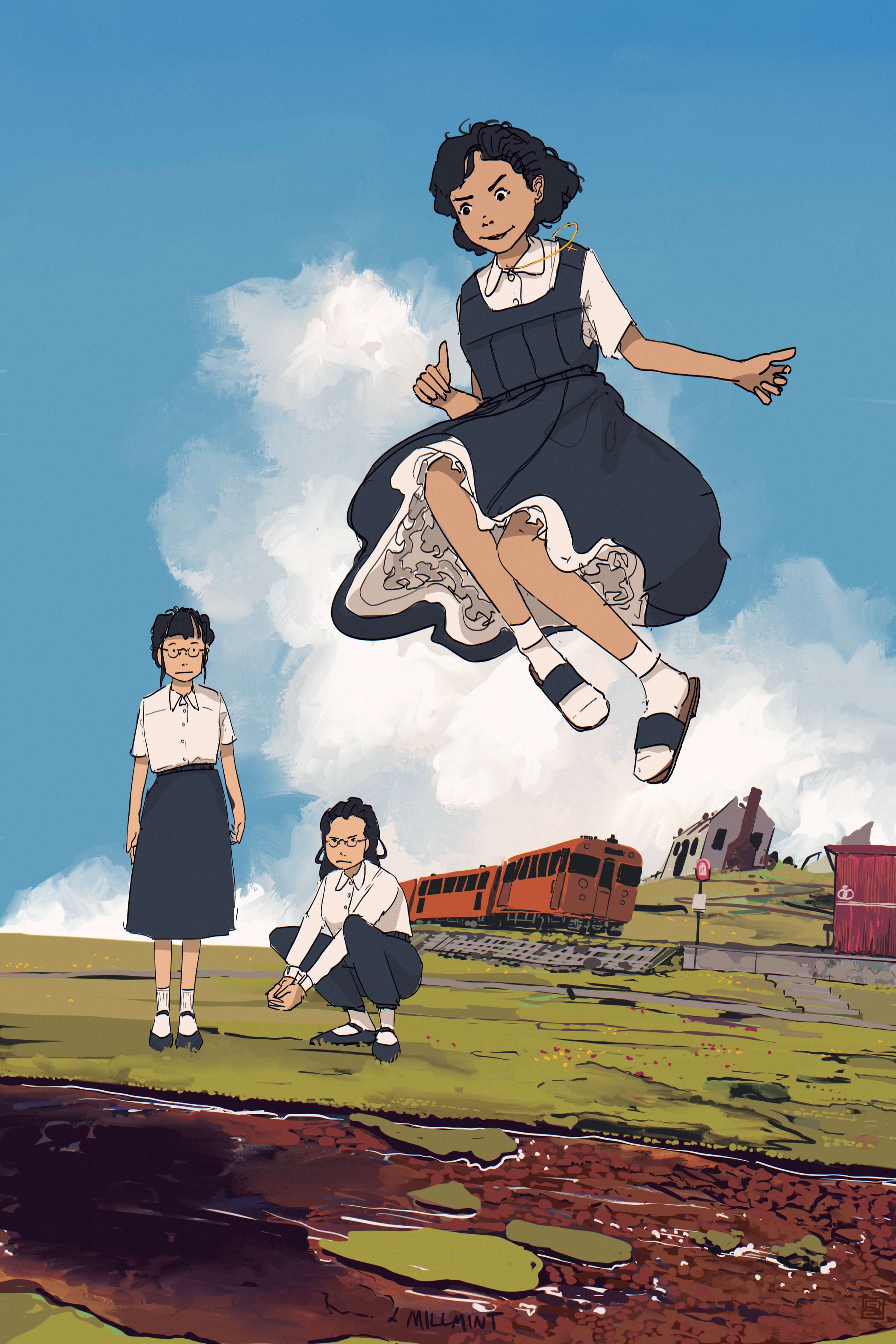 The mosses here are thick and dewey, and Tzipora’s house sandals did nothing to keep her out of them. With her feet soaked and her school bag on the station platform, she dared Cobian and Zhi to leap the tannin river. Local myth was that it was good luck, but she’d have jumped it anyway.