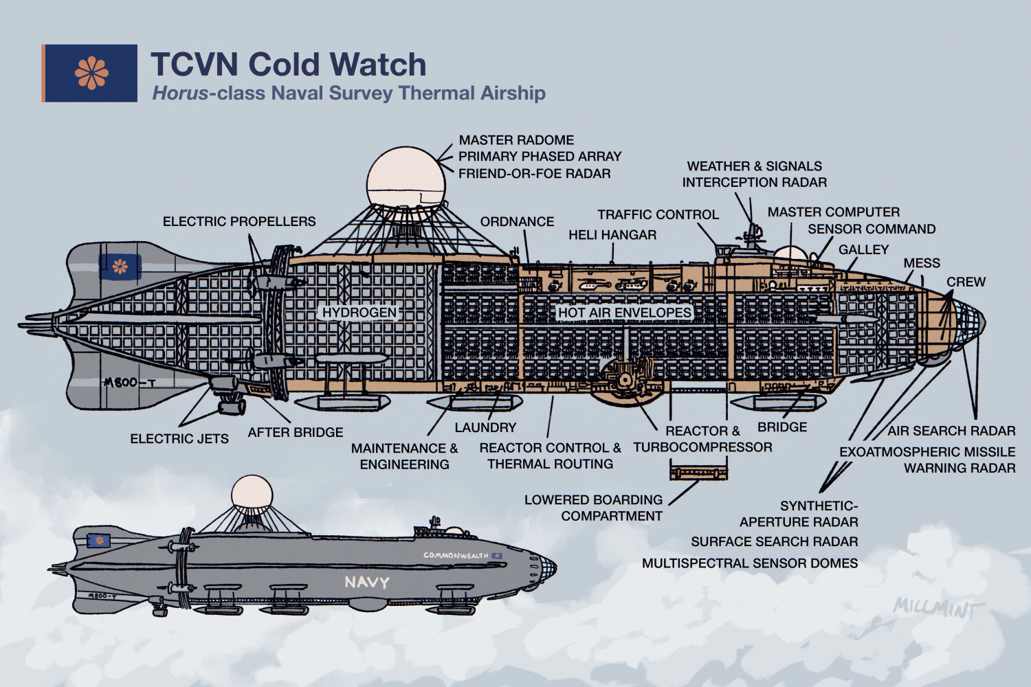 The Commonwealth Navy calls it a survey airship, but it’s openly acknowledged that the Cold Watch was designed to detect ballistic missiles. It casts a gaze over most of the Atlantic.