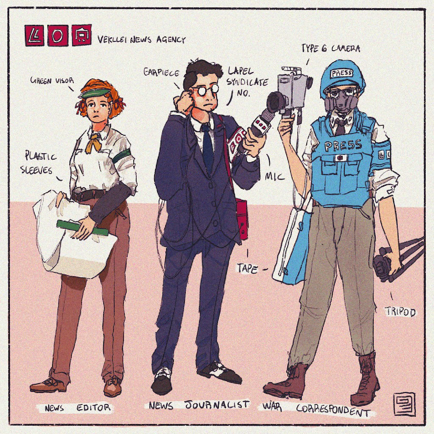 Vekllei has an endless supply of eager journalism students looking to report from abroad, and has consolidated news bureaus in almost every major city across the world, from Brisbane to Bogota. A special few go on to become war correspondents and foreign investigators, usually after receiving military training in mandatory service. Vekllei’s largest camera manufacturer, FilmFoto, produces specialised equipment for her news services that include gyroscope-mounted film cameras and portable audio equipment. Every Vekllei journalist carries a card guaranteeing them medical care across the globe.