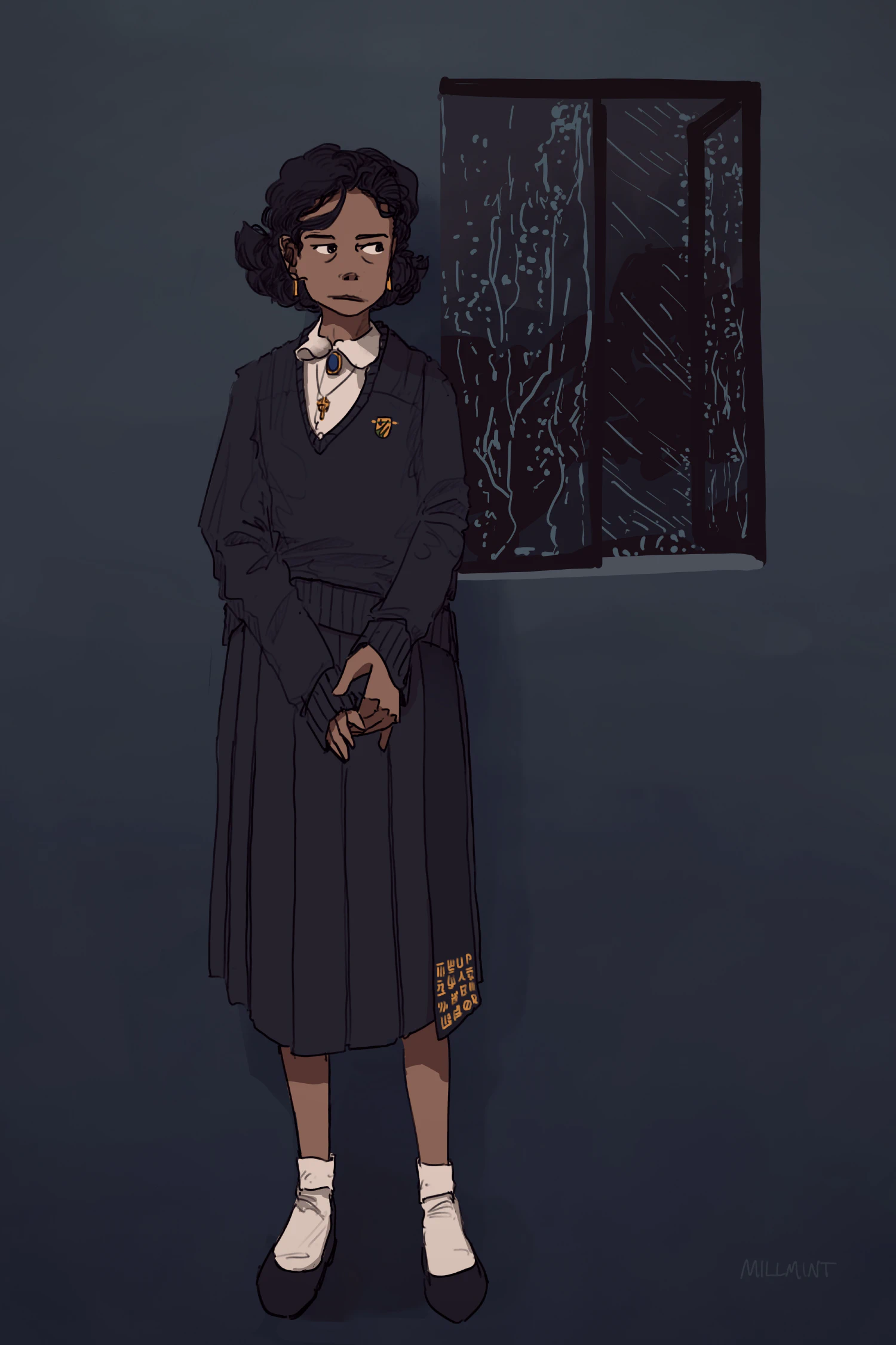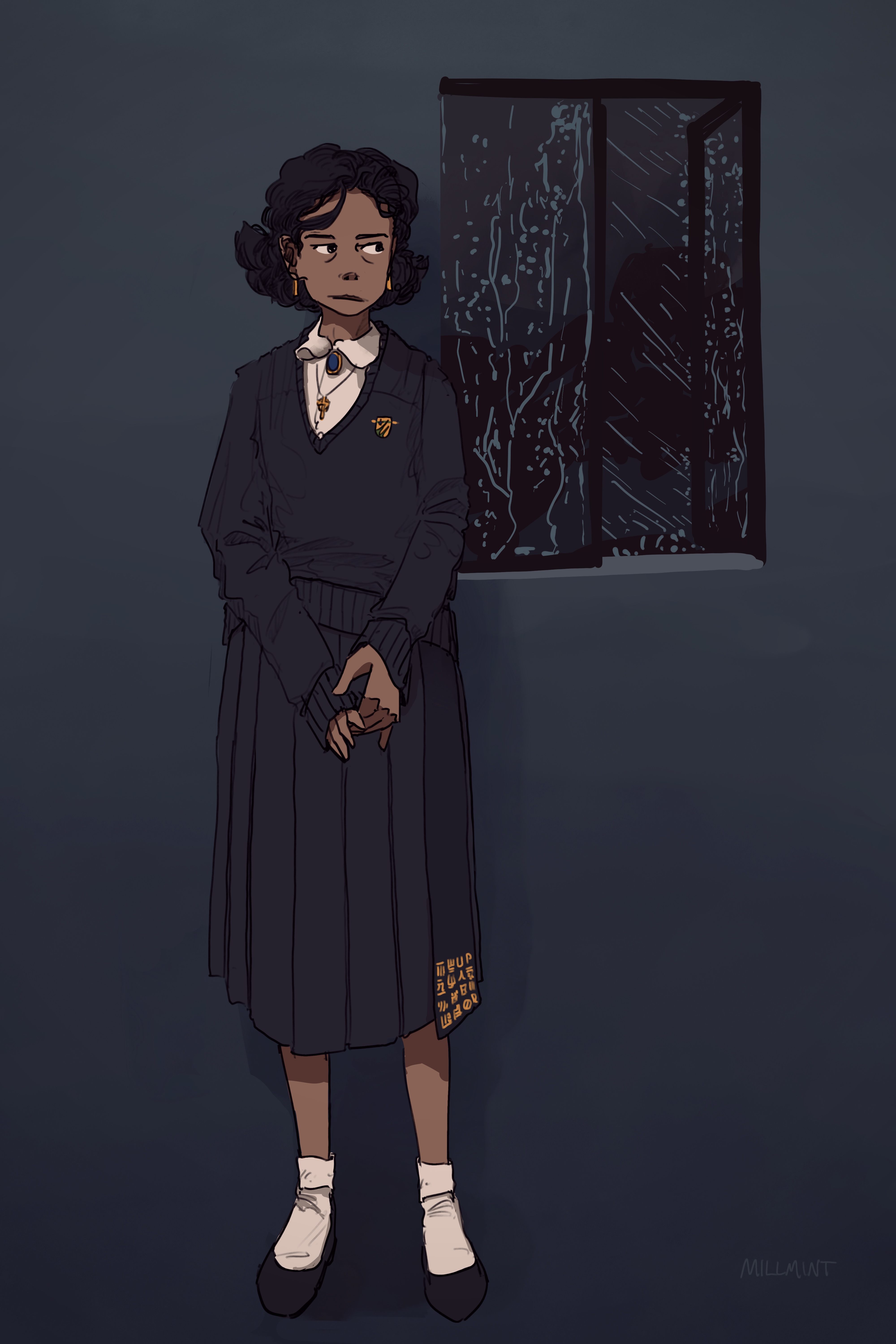 She’s wearing an Oslolan (Icelandic) pleat with good-luck runes stitched into it.