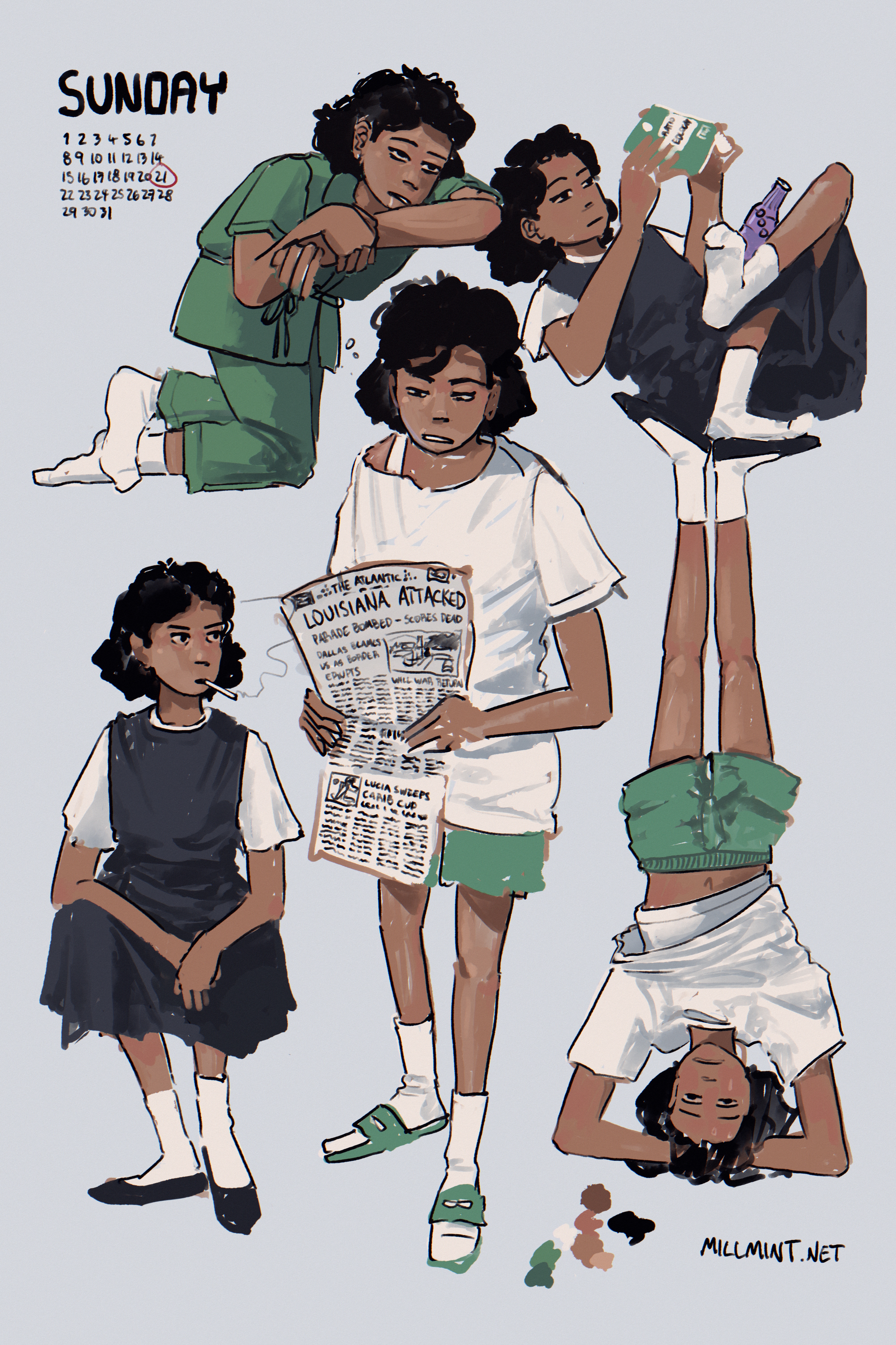 - exercise (standing on head)