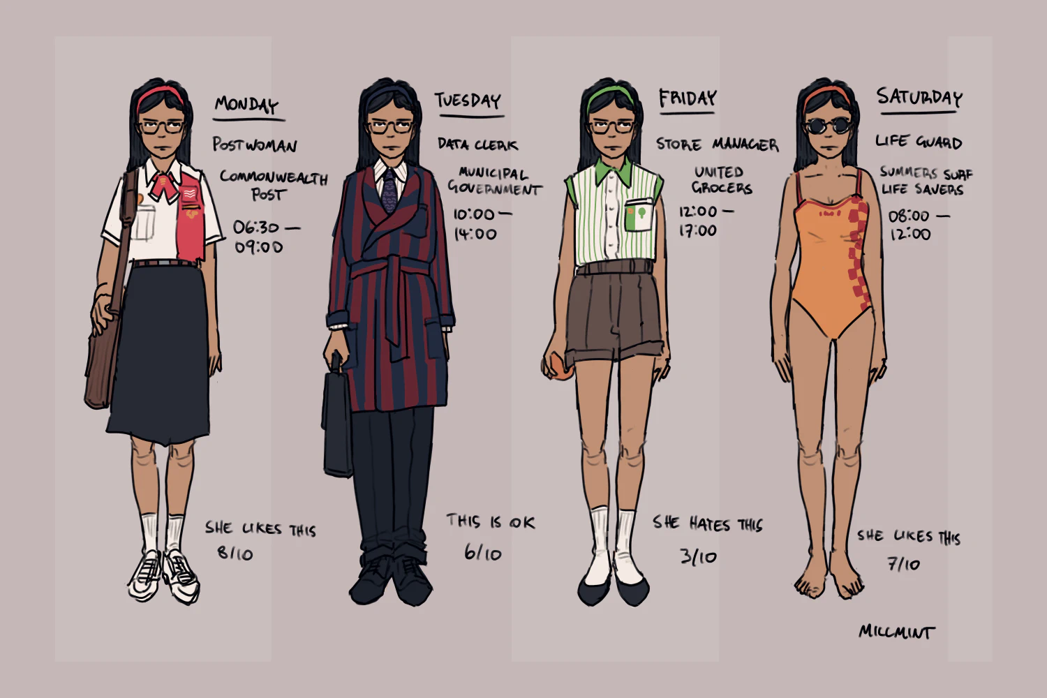Although working four different jobs is unusual, it’s not unheard of. Outside of specialists, most Vekllei people work multiple jobs. For entry-level work and especially for young people, it’s the norm.